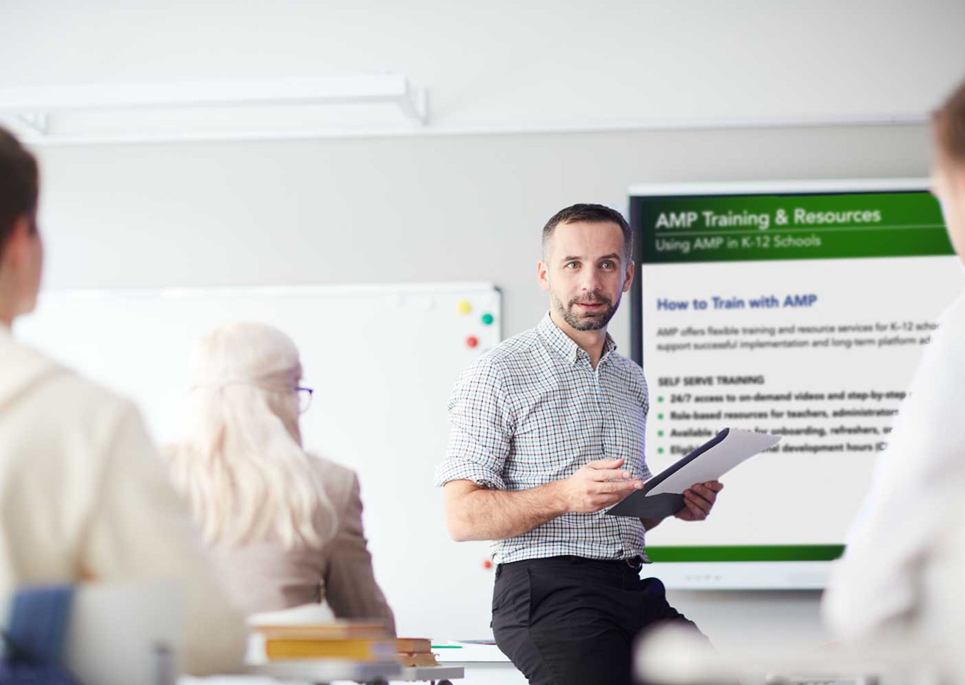 Led by AMP experts, AMP Training & Resources services help educators and staff build confidence, consistency, and efficiency while maximizing the value of AMP’s education ecosystem.